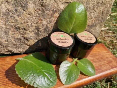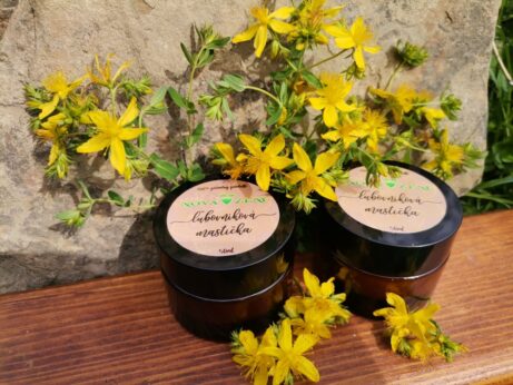 Všetky moje výrobky sú z prírodných ingrediencií, väčšinou z mojej záhradky, alebo sú nazbierané pri prechádzkach po okolitých lúkach Myjavských kopaníc.