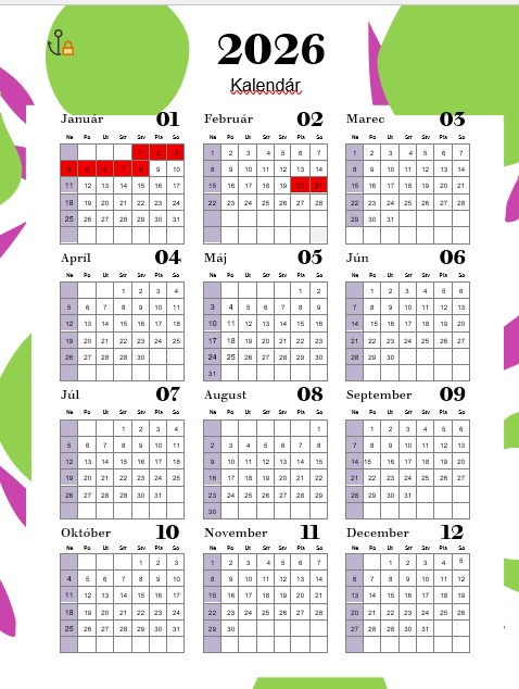 Legenda ku kalendáru: červená = obsadené, ostatné = voľné